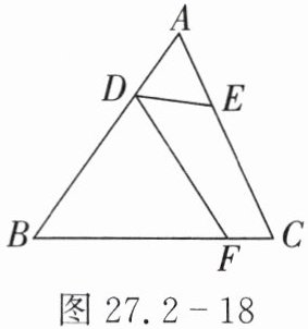7. 如图 27.2 - 18,在$\triangle ABC$中,$AB \neq AC$,$D$,$E$分别为边$AB$,$AC$上的点,$AC = 3AD$,$AB = 3AE$,点$F$为$BC$边上一点,添加一个条件