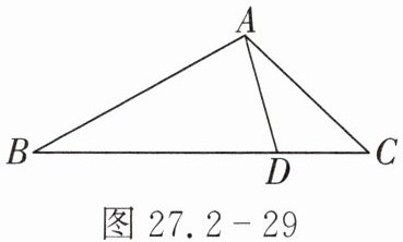 8. 如图 27.2 - 29,$D$是$\triangle ABC$的边$BC$上一点,$AB = 4$,$AD = 2$,$\angle DAC = \angle B$.若$\triangle ABD$的面积为$15$,则$\triangle ADC$的面积是多少?