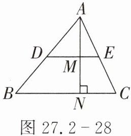 3. 如图 27.2 - 28,在$\triangle ABC$中,已知点$D$,$E$分别是边$AB$,$AC$的中点,$AN \perp BC$于点$N$,则$AM:AN =$