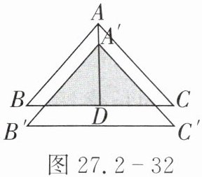 12. 如图 27.2 - 32,将$\triangle ABC$沿$BC$边上的中线$AD$平移到$\triangle A'B'C'$的位置. 已知$\triangle ABC$的面积为$16$,阴影部分三角形的面积$9$.若$AA' = 1$,则$A'D$的长度为