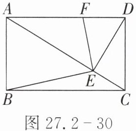 10. 如图 27.2 - 30,在矩形$ABCD$中,过点$D$作对角线$AC$的垂线,垂足为$E$,过点$E$作$BE$的垂线,交边$AD$于点$F$,如果$AB = 3$,$BC = 5$,那么$DF$的长是