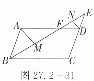 11. 如图 27.2 - 31,在$□ ABCD$中,$E$是$CD$延长线上一点,$BE$与$AD$交于点$F$,$CD = 2DE$,$M$,$N$分别是$BF$,$EF$的中点. 若$\triangle DEF$的面积为$a$,则$AM:DN =$
