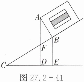 7. 如图 27.2 - 41,一只箱子在斜面上,箱高$AB = 1.2\ m$. 坡面$BC = 2.6\ m$,点$B$离地面的距离$BE = 1\ m$,此时点$A$离地面的距离是