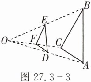 4. 如图27.3-3,在$\triangle ABC$的外侧任取一点$O$,连接$OA$,$OB$,$OC$,并分别取它们的中点$D$,$E$,$F$,连接$DE$,$EF$,$FD$,得$\triangle DEF$.下列说法中正确的个数是(