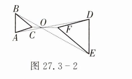 3. 如图27.3-2,$\triangle ABC$与$\triangle DEF$是位似图形,面积比为$4:9$.若$AB=4$,则$DE=$
