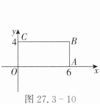 3. 如图27.3-10,矩形$OABC$的顶点$O$是坐标原点,边$OA$在$x$轴上,边$OC$在$y$轴上.若矩形$OA_{1}B_{1}C_{1}$与矩形$OABC$关于点$O$位似,且矩形$OA_{1}B_{1}C_{1}$的面积等于矩形$OABC$面积的$\frac{1}{4}$,则点$B_{1}$的坐标为(