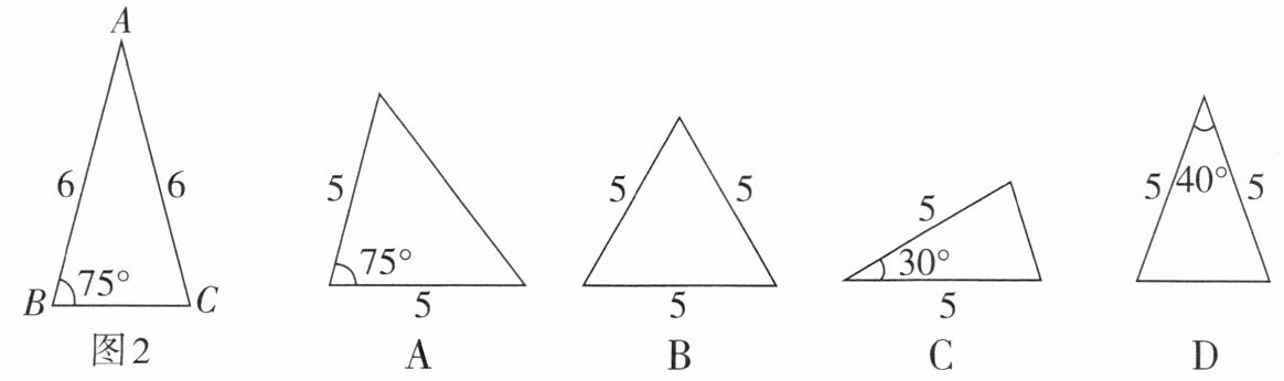 4. 如图2,给出$\bigtriangleup ABC$,则下列选项中与$\bigtriangleup ABC$相似的是(