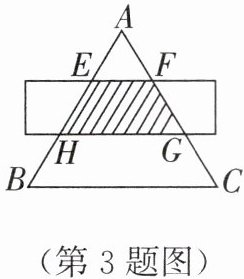 3. 如图,$\bigtriangleup ABC$是等边三角形,它被一平行于$BC$的矩形所截,$AB$被截成三等份,则图中阴影部分的面积是$\bigtriangleup ABC$面积的(