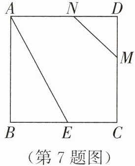 7. 如图,正方形$ABCD$边长是4,$BE=CE$,$MN=2$,线段$MN$的端点$M$,$N$分别在$CD$,$AD$上滑动,当$DM=$