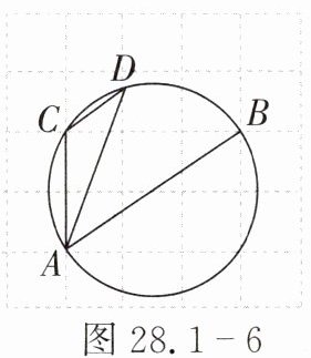 10. 如图 28.1 - 6,在由边长为 1 的小正方形构成的网格图中,点 $ A $,$ B $,$ C $ 都在格点上,以 $ AB $ 为直径的圆经过点 $ C $,$ D $,则 $ \sin \angle ADC $ 的值是