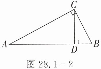 6. 如图 28.1 - 2,在 $ Rt \triangle ABC $ 中,$ \angle ACB = 90^{\circ} $,$ CD \perp AB $,垂足为点 $ D $。若 $ AC = \sqrt{5} $,$ BC = 2 $,则 $ \sin \angle ACD $ 的值是