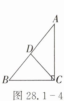 7. 如图 28.1 - 3,已知在 $ Rt \triangle ABC $ 中,$ \angle C = 90^{\circ} $,$ AB = 5 $,$ BC = 3 $。求 $ AC $ 的长和 $ \sin A $ 的值。