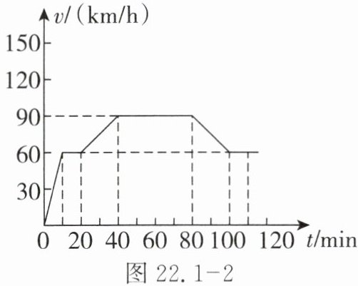 7. 一辆汽车在一段行驶过程中,速度$v$随行驶时间$t$变化的情况如图22.1-2所示.
