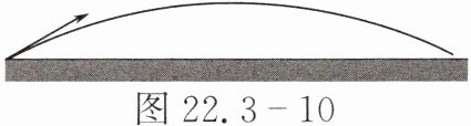 1. 如图 22.3 - 10,一小球沿与地面成一定角度的方向飞出,小球的飞行路线是一条抛物线,如果不考虑空气阻力,小球的飞行高度 $ y $(单位:m)与飞行时间 $ x $(单位:s)之间具有函数关系 $ y = - 5x^{2} + 20x $。请根据要求解答下列问题: