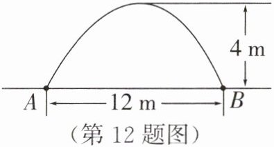 12. 如图是一座拱桥的截面图,当水面AB宽为12 m时,桥洞顶部离水面4 m.已知桥洞的拱形是抛物线,以水平方向为$x$轴,建立平面直角坐标系.若选取点A为坐标原点时的抛物线解析式是$y = - \frac{1}{9}(x - 6)^2 + 4$,则选取点B为坐标原点时的抛物线解析式是