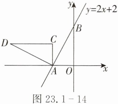 4. 如图,直线 $y = 2x + 2$ 与 $x$ 轴,$y$ 轴分别相交于点 $A$,$B$,将$\triangle AOB$绕点 $A$ 逆时针方向旋转 $90^{\circ}$得到$\triangle ACD$,则点 $D$ 的坐标为
