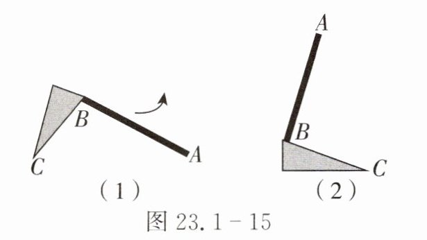 5. 如图,教室里有一只倒地的装垃圾的灰斗,$BC$ 与地面的夹角为 $50^{\circ}$,$\angle C = 25^{\circ}$,小贤同学将它扶起平放在地面上(如图),则灰斗柄 $AB$ 绕点 $C$ 转动的角度为