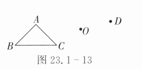 3. 如图,将$\triangle ABC$绕点 $O$ 旋转后,顶点 $A$ 的对应点为点 $D$,试确定顶点 $B$,$C$ 对应点的位置,并画出旋转后的三角形.