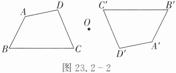 3. 如图 23.2 - 2,将四边形 ABCD 绕点 O 旋转 180°得到四边形 A'B'C'D',请写出图中的对称中心、对称点和对应线段。