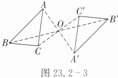 5. 如图 23.2 - 3,△ABC 和△A'B'C'是成中心对称的两个图形,则下列说法不正确的是(