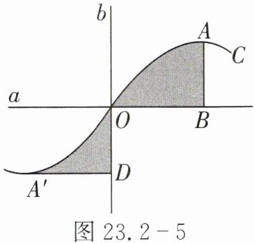 7. 如图 23.2 - 5,直线 a,b 垂直相交于点 O,曲线 C 关于点 O 成中心对称,点 A 的对称点是点 A',AB ⊥ a 于点 B,A'D ⊥ b 于点 D。若 OB = 4,OD = 3,则阴影部分的面积之和为