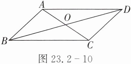 (2)如图 23.2 - 10,将▱ABCD 绕它的两条对角线的交点 O 旋转 180°,你有什么发现?