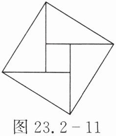 4. 我国汉代数学家赵爽在他所著《勾股圆方图注》中,运用弦图(如图 23.2 - 11)巧妙地证明了勾股定理。“赵爽弦图”曾作为 2002 年第 24 届国际数学家大会的会徽图案。下列关于“赵爽弦图”说法正确的是(