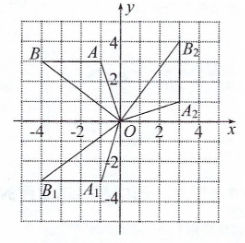 (2)画出$\bigtriangleup ABO$绕点$O$顺时针旋转$90^{\circ}$后得到的$\bigtriangleup A_{2}B_{2}O$,并写出点$B_{2}$的坐标;