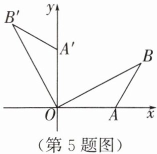 5. 如图,在平面直角坐标系中,点$B$在第一象限,点$A$在$x$轴的正半轴上,$\angle AOB=\angle B=30°$,$OA=2$.将$\triangle AOB$绕点$O$逆时针旋转$90°$,点$B$的对应点$B'$的坐标是(