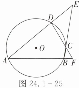 7. 如图 24.1-25,圆内接四边形$ABCD$两组对边的延长线分别相交于点$E$,$F$,且$\angle E = 40°$,$\angle F = 60°$,则$\angle A =$