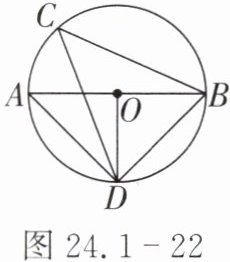 2. 如图 24.1-22,$AB$是$\odot O$的直径,$\angle BOD$和$\angle A$的关系是_______,$\angle A$和$\angle C$的关系是_______,$\angle ADB$的度数是_______.
