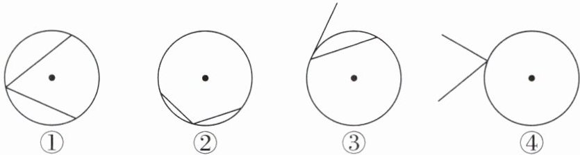 ②中角顶点不是圆周角的顶点(圆周角顶点应在圆上),不是圆周角;