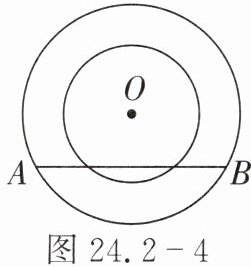 7.如图24.2-4,以点O为圆心的两个同心圆的半径分别为5和3,若大圆的弦AB与小圆有公共点,则弦长AB的取值范围是