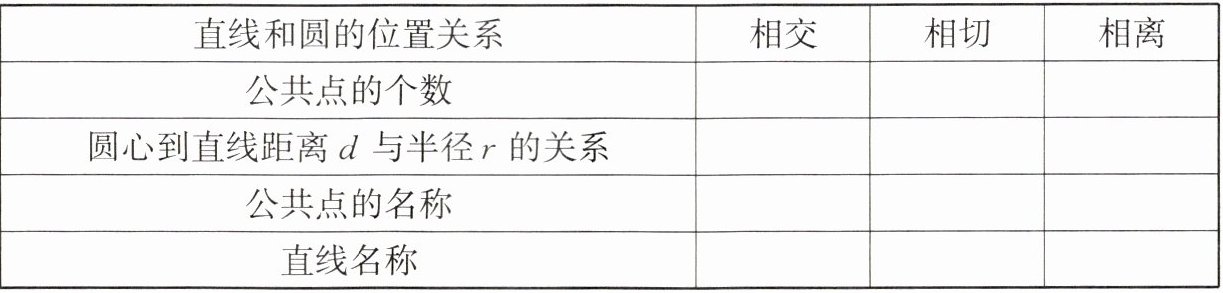 | 直线和圆的位置关系 | 相交 | 相切 | 相离 |