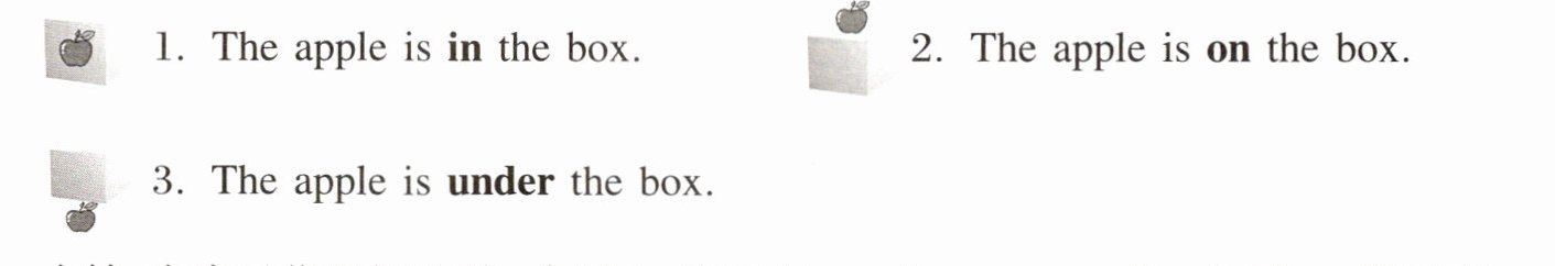 A)看图片,小结表示位置概念时介词 in, on 和 under 的用法。