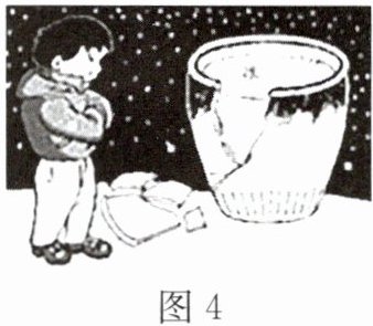 4. 细心的小明发现寒冷的冬天放在室外的盛水缸常常被冻裂。如图4所示,请你帮他做个计算:一个容积为 $ 0.18m^{3} $ 的水缸盛满水,则缸中: