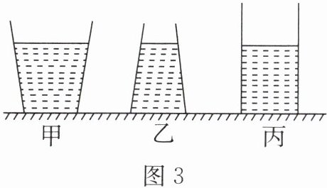 5. 甲、乙、丙是三个底面积相同,形状不同的容器(不考虑容器壁的厚度)。将质量相等的盐水、水和酒精分别盛入三个容器内,液面恰好相平,如图 3 所示。已知 $\rho_{盐水}>\rho_{水}>\rho_{酒精}$。由此可知盛盐水、水和酒精的容器分别是