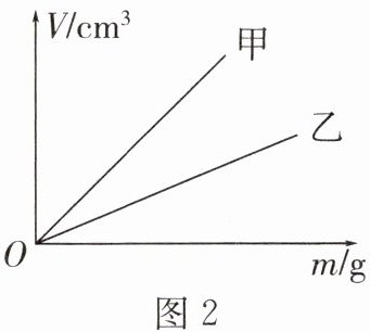 3. 某实验小组分别用天平和量筒测出了两种物质的质量和体积,并描绘出 $V-m$ 图像如图 2 所示,则下列判断正确的是
