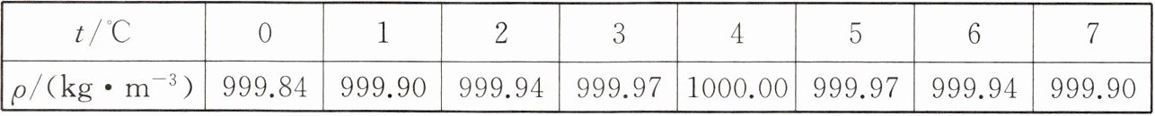 12. 下面表格中是水的密度随温度变化的实验数据,分析表中的数据不能直接得出的结论是
