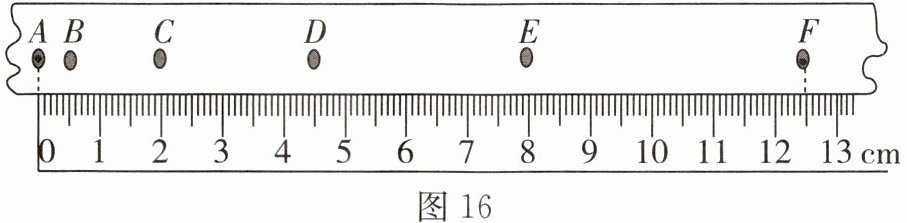 28. 如图 16 所示是一小球从 A 点沿直线运动到 F 点的频闪照片。若频闪照相机每隔 0.2 s 闪拍一次,分析照片可知:小球从 A 点到 F 点做