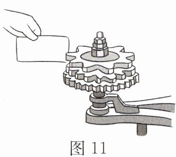 19. 如图 11 所示。在同一个轴上固定着三个齿数不同的齿轮。当齿轮匀速旋转时,用纸片分别接触齿轮,使纸片发出声音的音调最高的是