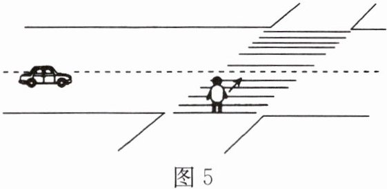 3. (1)如图 5 所示,某同学准备横过公路时,正好有一辆汽车从距岔路口 $100\ m$ 处以 $72\ km/h$ 的速度驶过来。如果公路宽 $12\ m$,该同学以 $1.2\ m/s$ 的正常步行速度能否在汽车到达岔路口前完全通过公路?