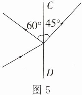 9. 如图 5 所示,一束入射光在玻璃和空气的界面 $ CD $ 处同时发生了反射和折射,以下说法正确的是