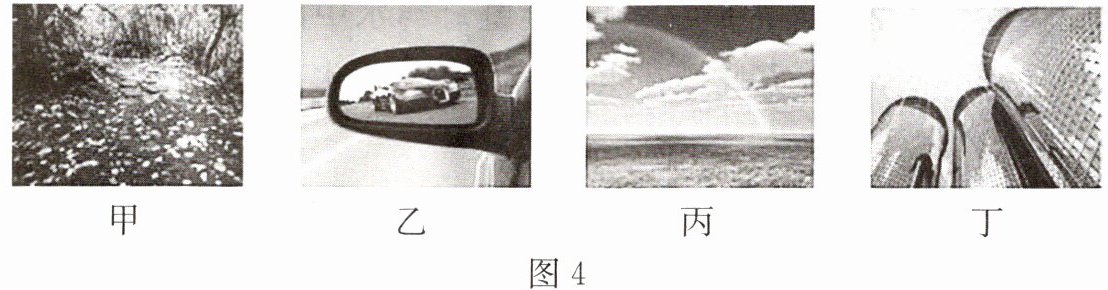 D.图丁,巨大的玻璃幕墙造成的光污染是由光的漫反射形成的