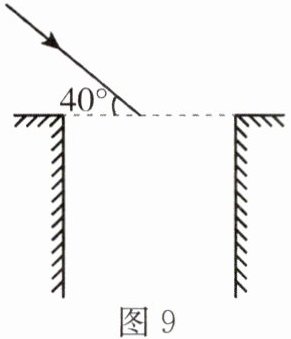 17. 如图 9 所示太阳光与地面成 $ 40^{\circ} $ 角斜射过来,要使光线沿竖直方向反射入井中。(1)画出平面镜的位置;(2)标出反射角的大小。