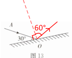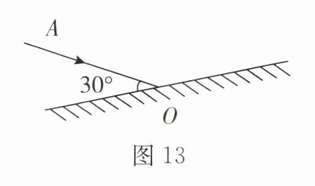 20. (3 分) 在图 13 中根据给出的入射光线 $AO$ 画出反射光线 $OB$, 并标出反射角的度数。