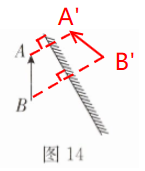 21. (3 分) 在图 14 中作出物体 $AB$ 在平面镜中所成的像 $A'B'$。