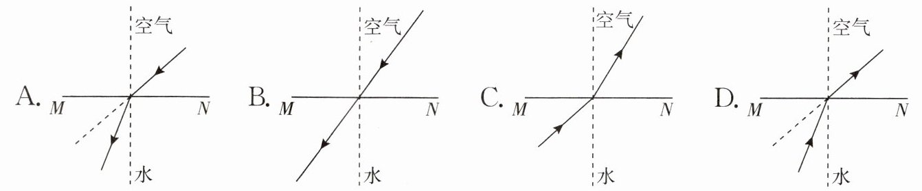 7. 唐代诗人储光羲的诗中写到:“垂钓绿湾春,春深杏花乱。潭清疑水浅,荷动知鱼散……”。其中“潭清疑水浅”是作者站在岸边感觉水变浅了,能正确表示“潭清疑水浅”光路的是