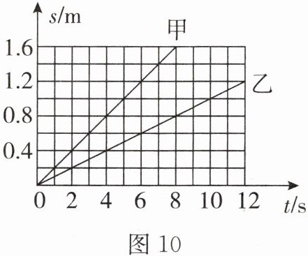 15. 甲、乙两物体同时同地向东做匀速直线运动,它们的s-t图像如图10所示。由图像可知