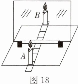 23. 在做“探究平面镜成像特点”实验时,小明在分析他自己的实验数据时发现,三组数据的像距都比物距大一些。他认为像距总是比物距大可能与玻璃板的厚度有关。他利用如图18所示的器材对此问题进行了进一步的探究。